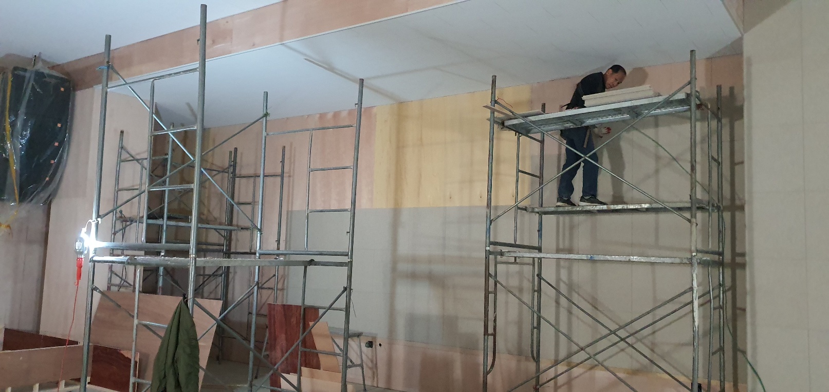 교회 본당 방음벽 설치 및 주방 공사 그리고 에어콘 설치 공사 중입니다.