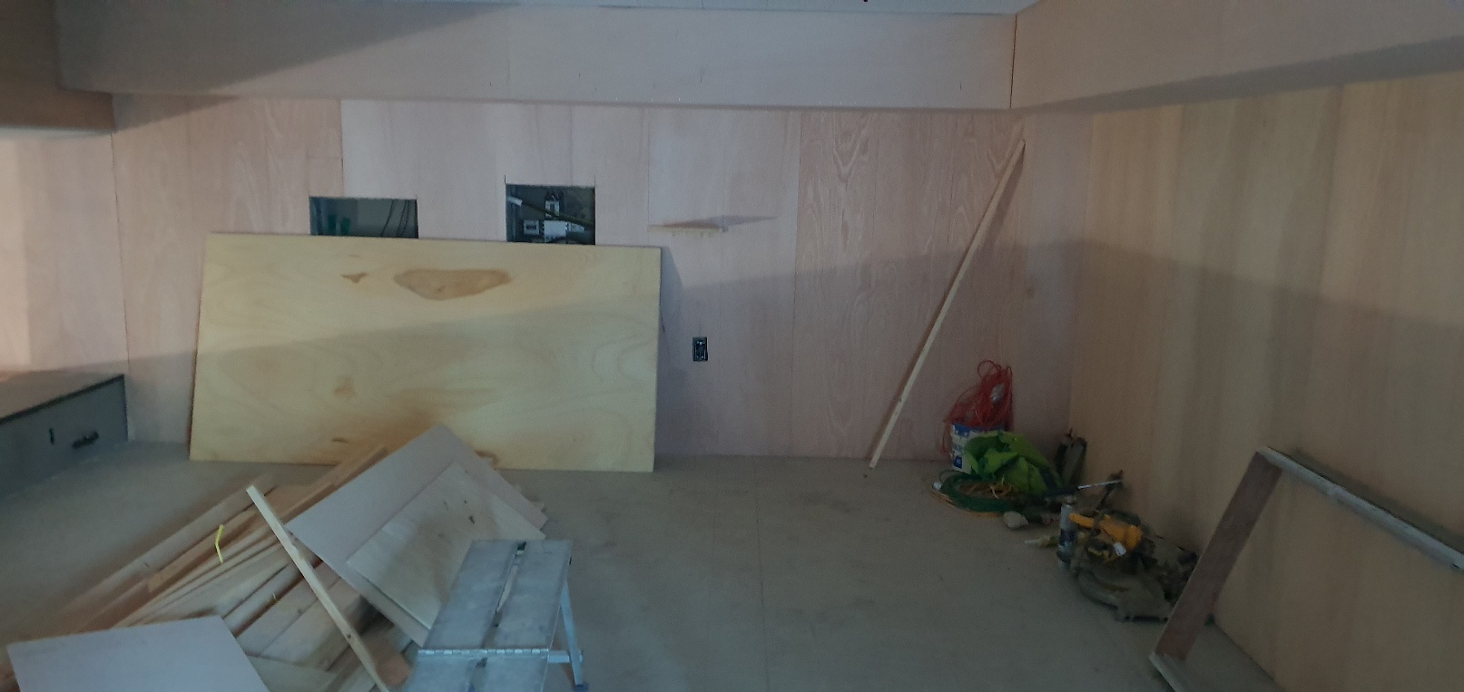 교회 본당 내부벽 설치 및 전기공사가 진행되고 있습니다.